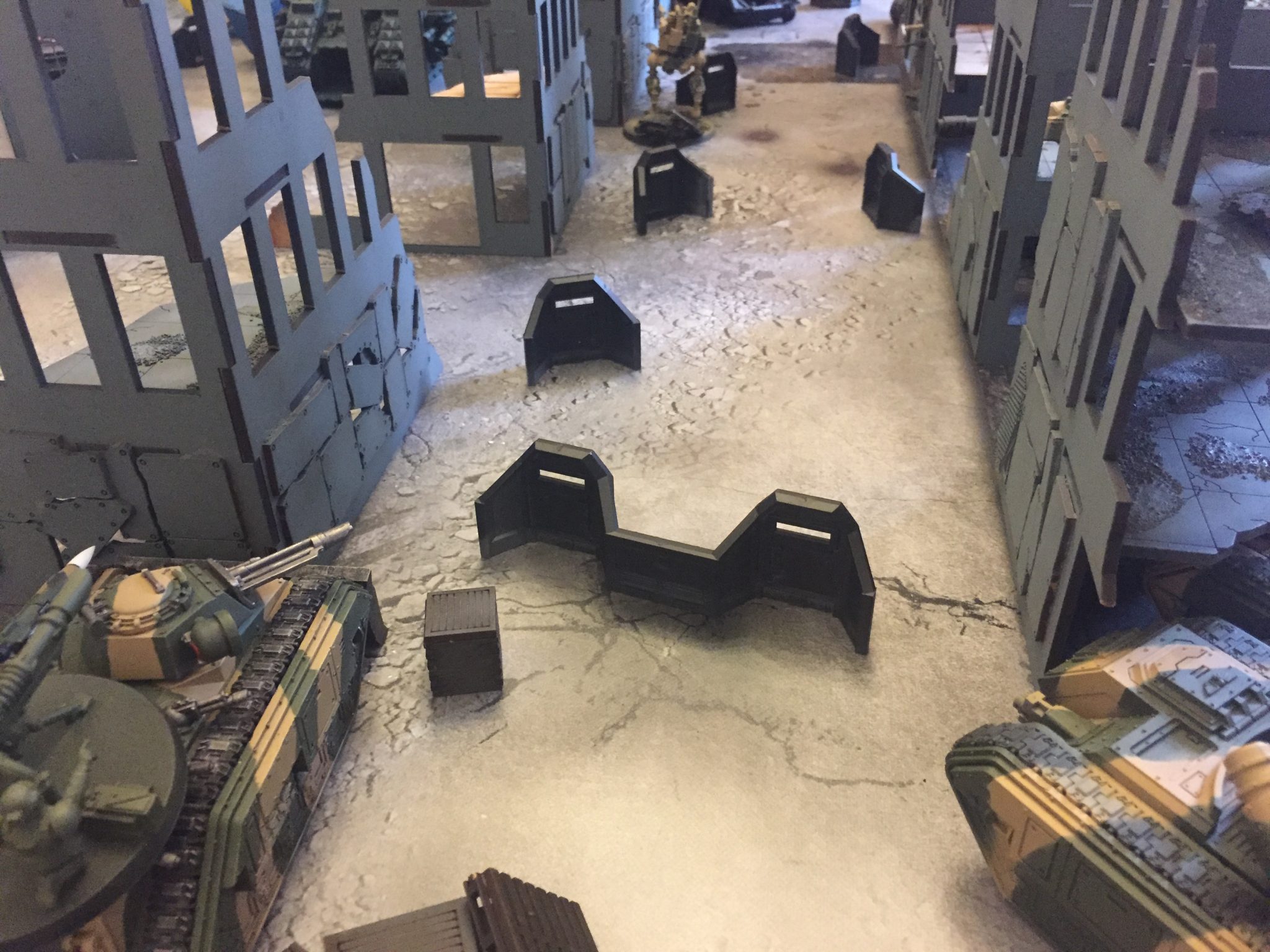 It seems that at some point in the past the Conscripts disrespected the Dark Angels hugely. They took 38 casualties in the first turn of shooting. Luckily the Commissar stopped them from taking loads of additional casualties. More shooting from so many Bolter based weapons soon wiped out a squad of Guardsmen that were overlooking the street. Even with their improved cover save of 4+ they all perished. The amount of anti infantry sounds the Dark Angels had was impressive. Assault Cannons, Intercessor Marines, Inceptor Marines, Hurricane Bolters, etc.