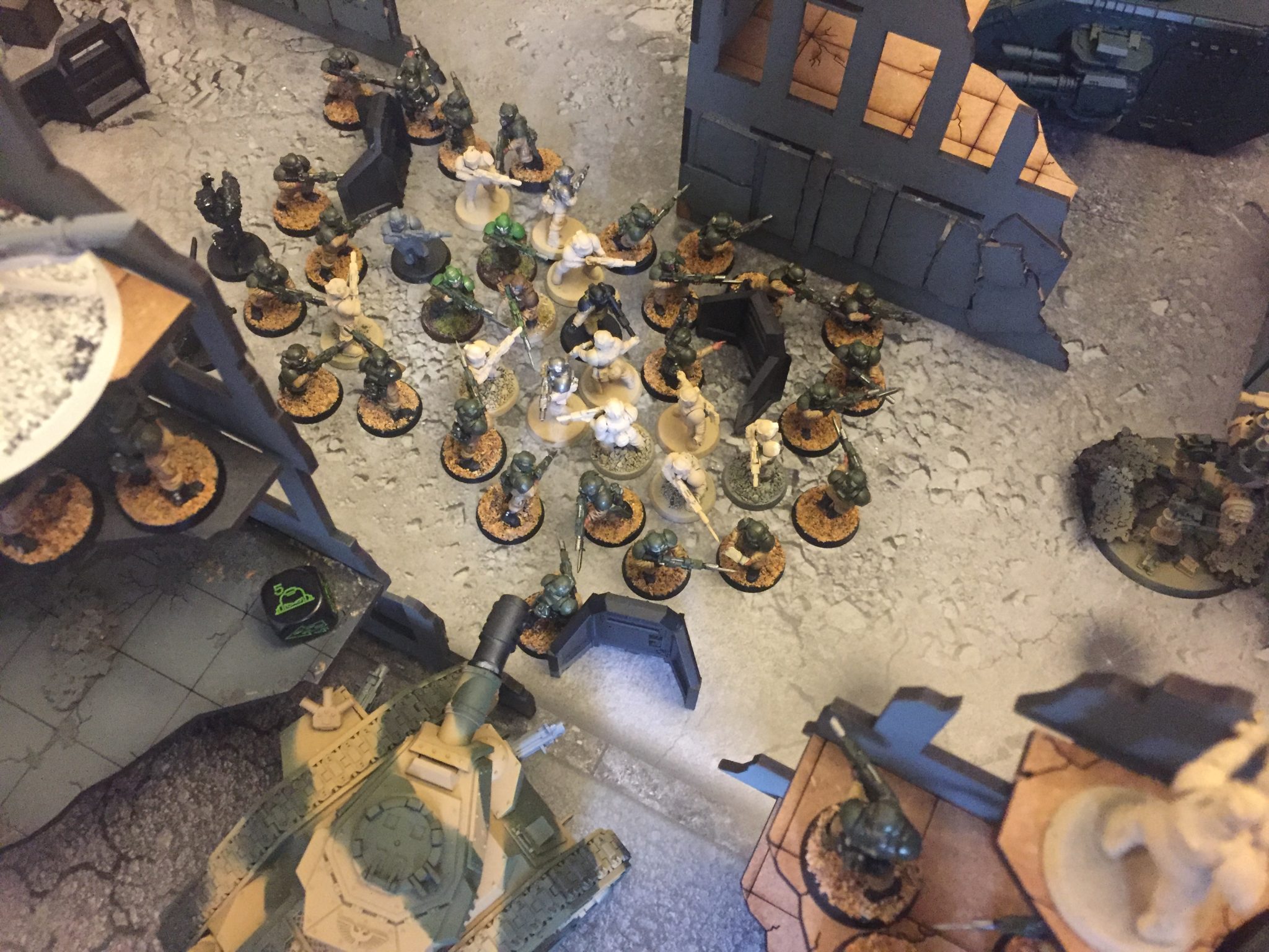 I was positive still at this point. I had lost a squad of Guardsmen, a Sentinel and 40 Conscripts. A lot of models but my force was still intact and was able to operate effectively.