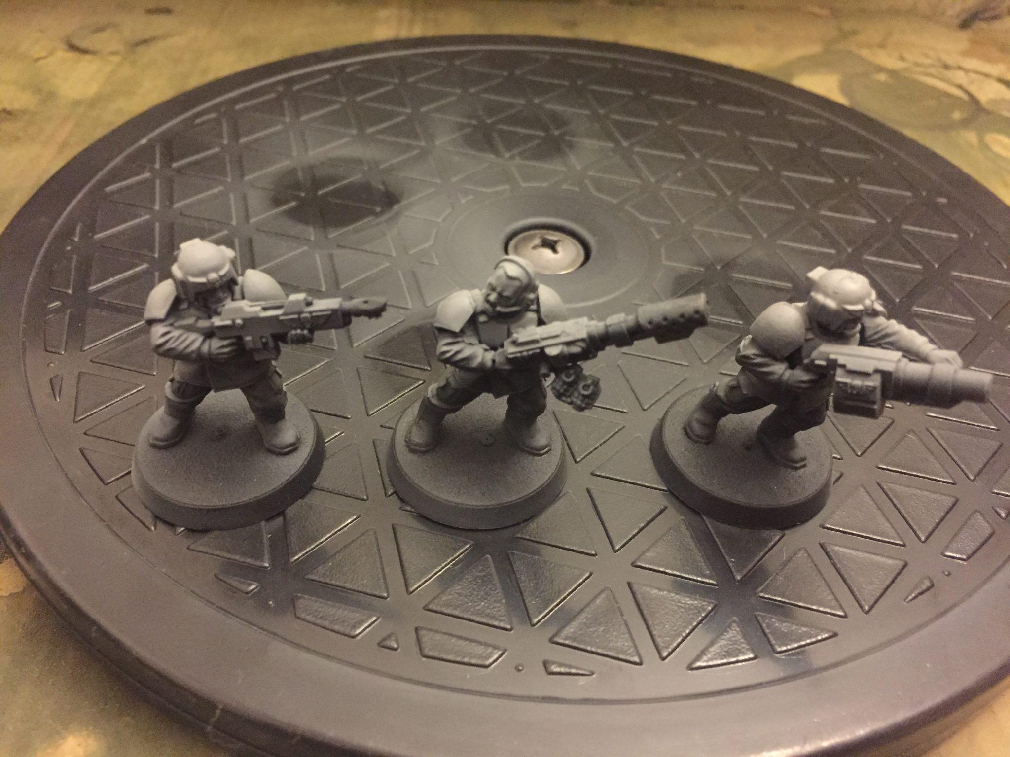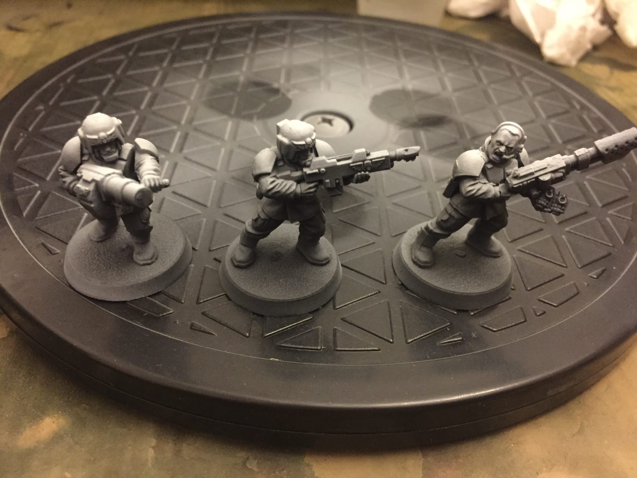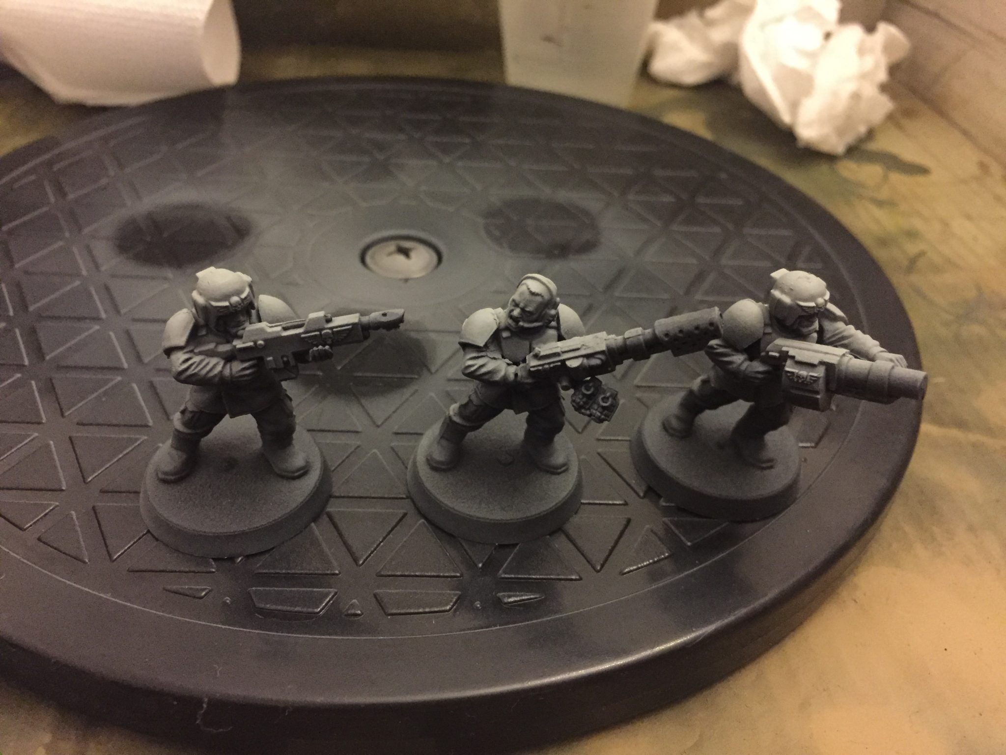 In case you missed it I’ve managed to do a lot of airbrushing recently – I say recently, I mean over the last 6 months. Which is good for me! It’s been all camo stripes so far on a variety of vehicles; Taurox, Malcador, Leman Russ, Valkyrie, Vulture, etc. Time for something new; Airbrushing Cadian Shock Troops.