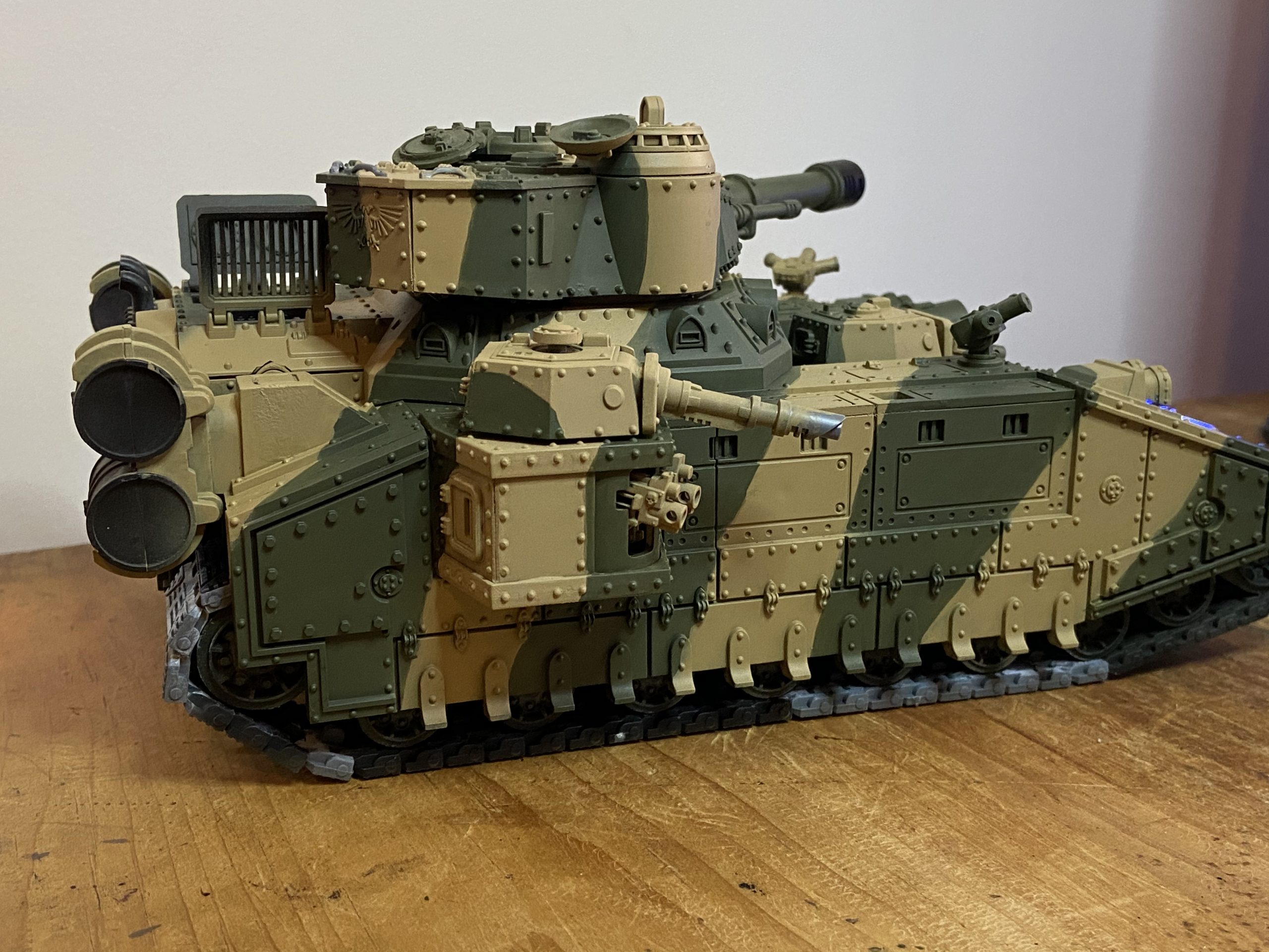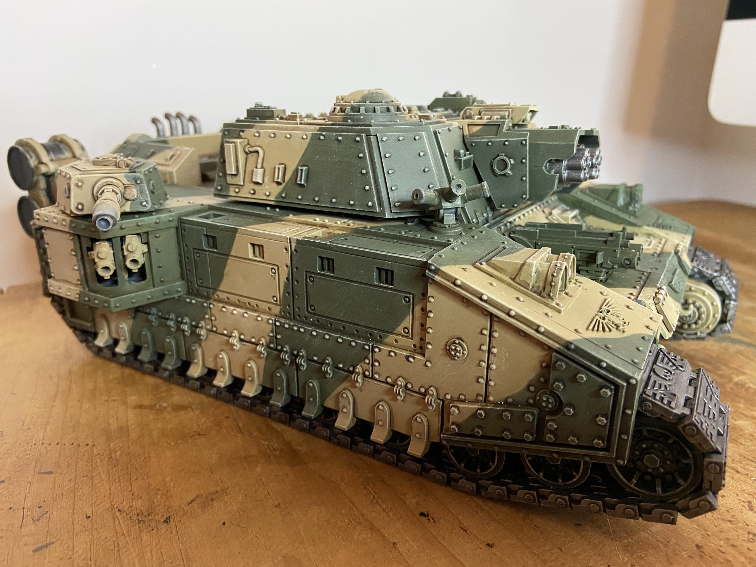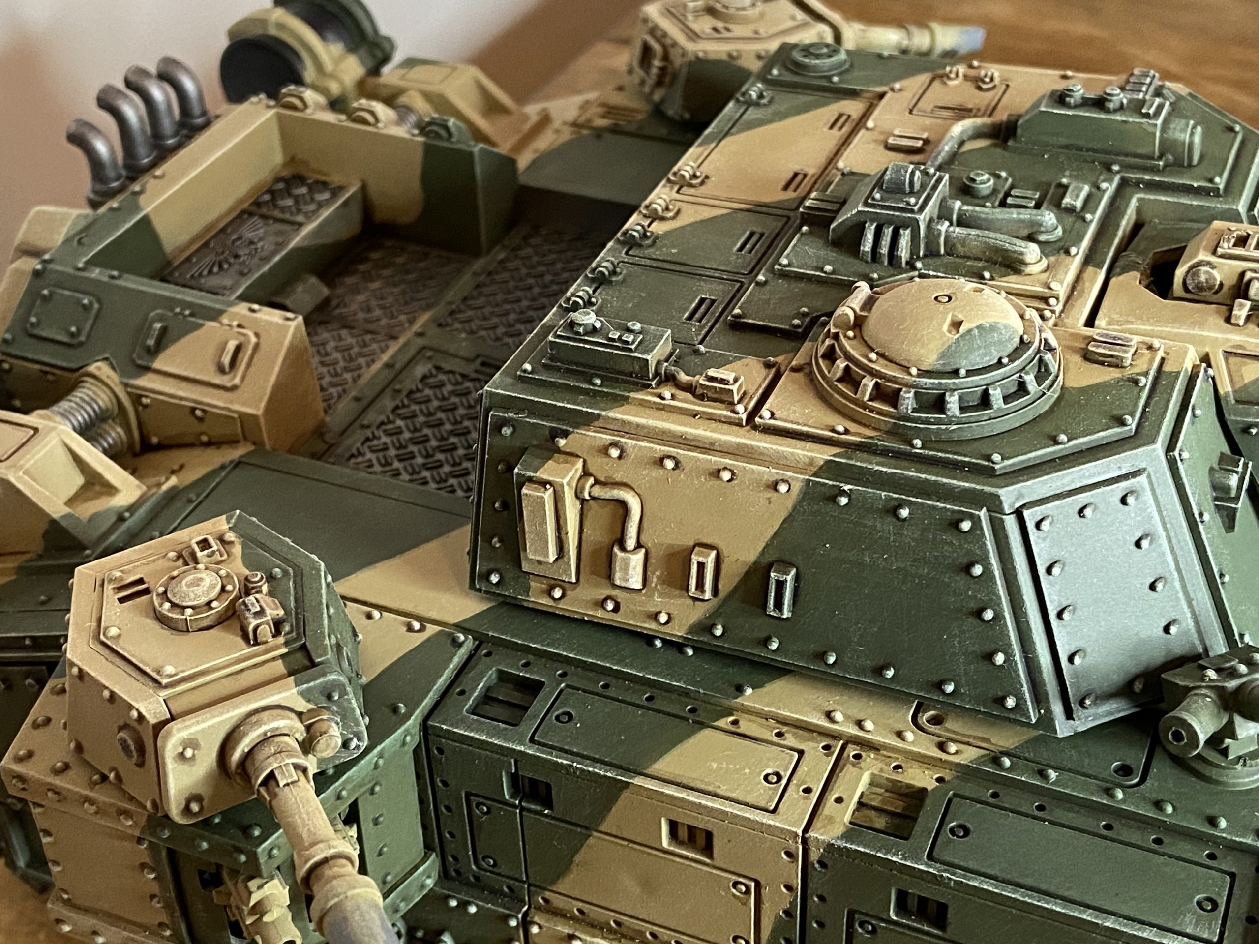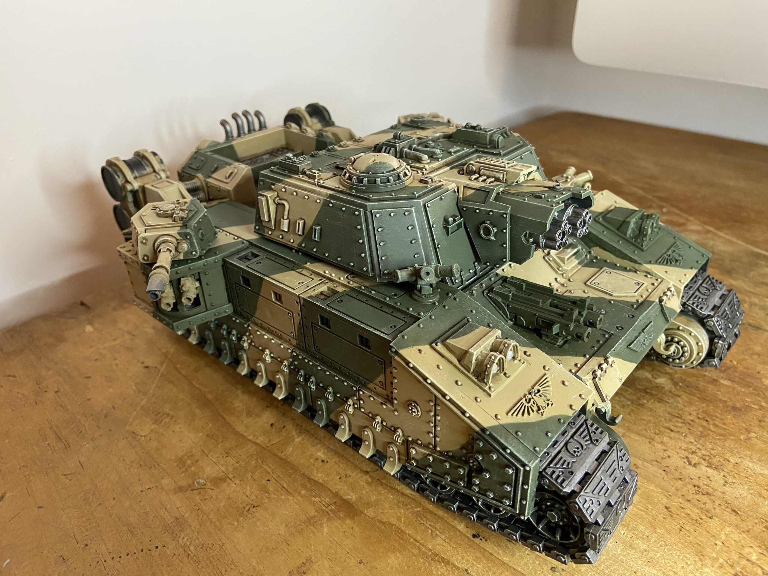 This is the Baneblade, completed. Later on in this article, there are WIP images, along with all the various methods employed to get The Nameless Storm done!