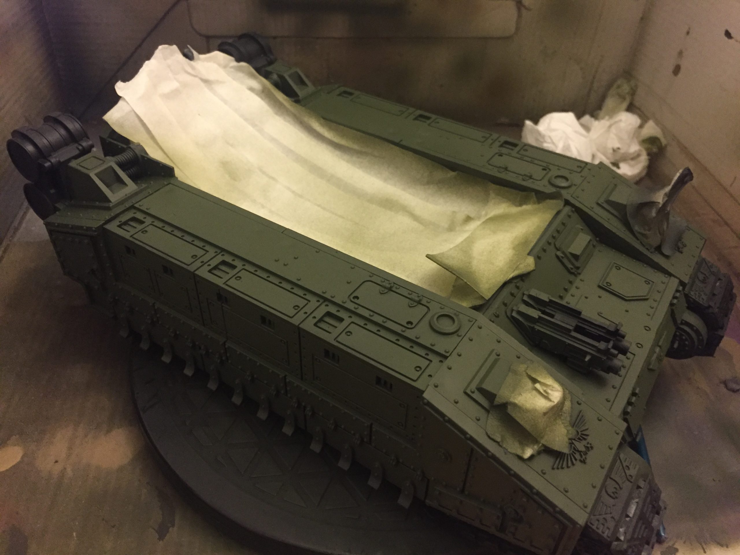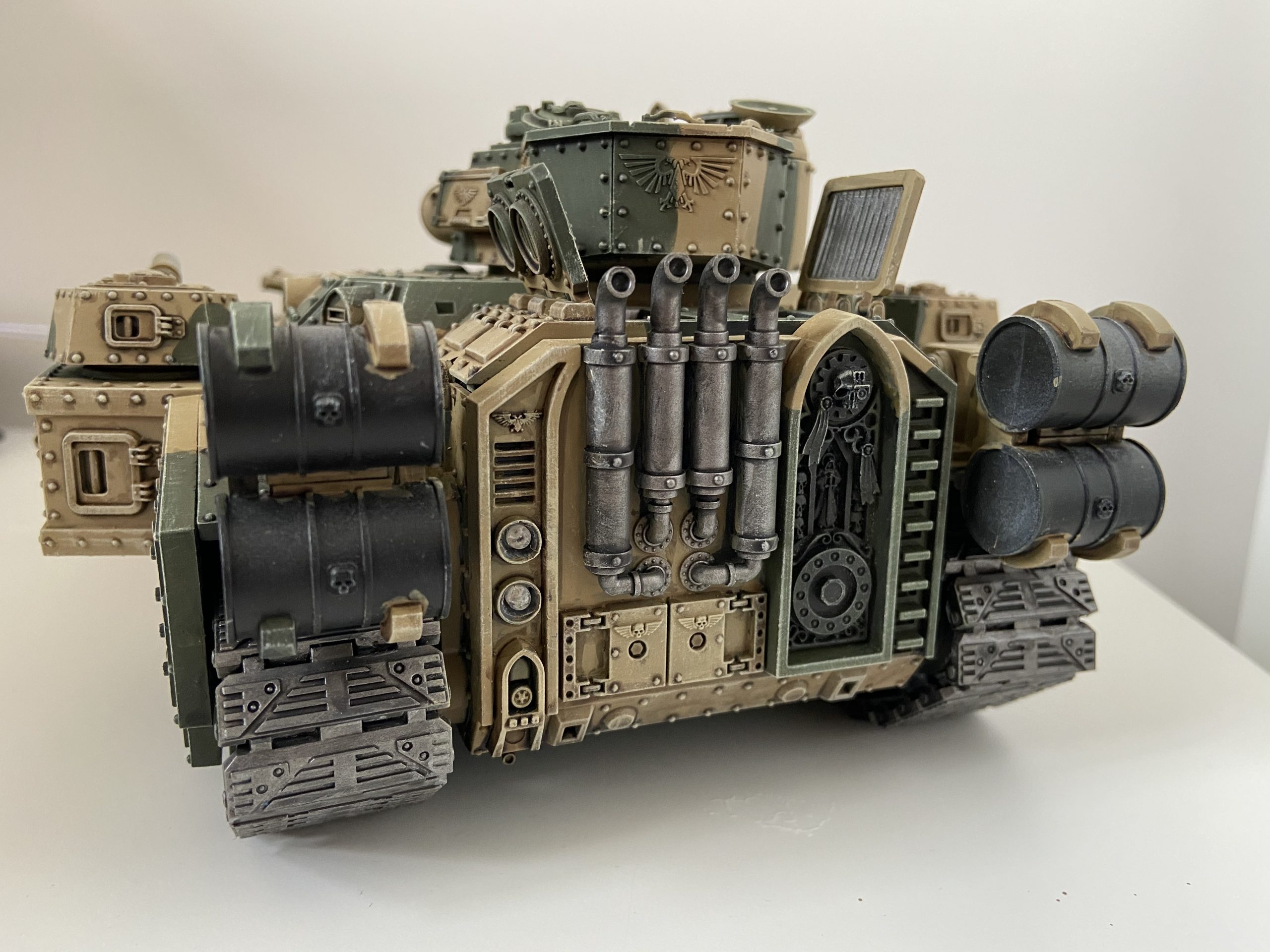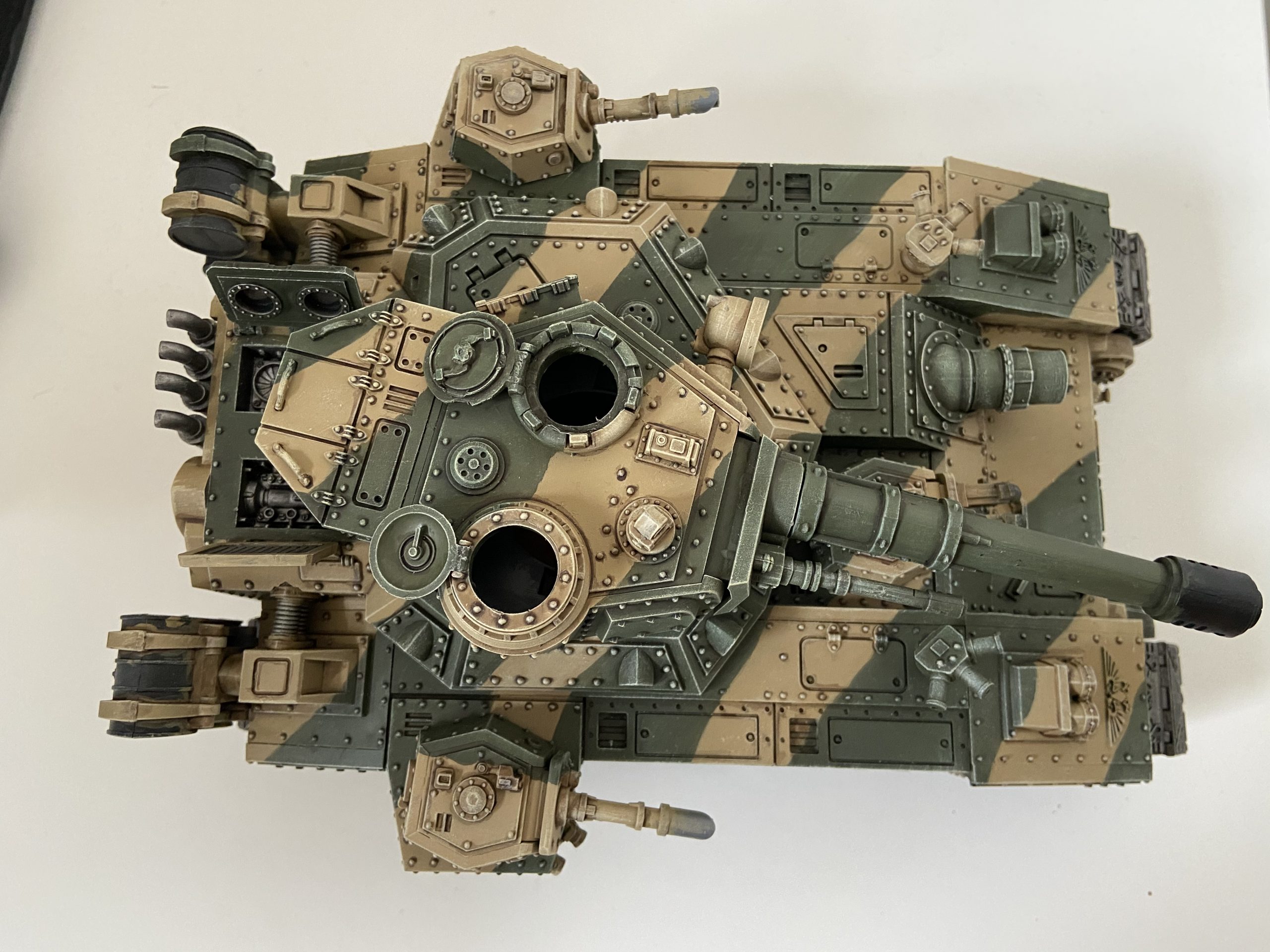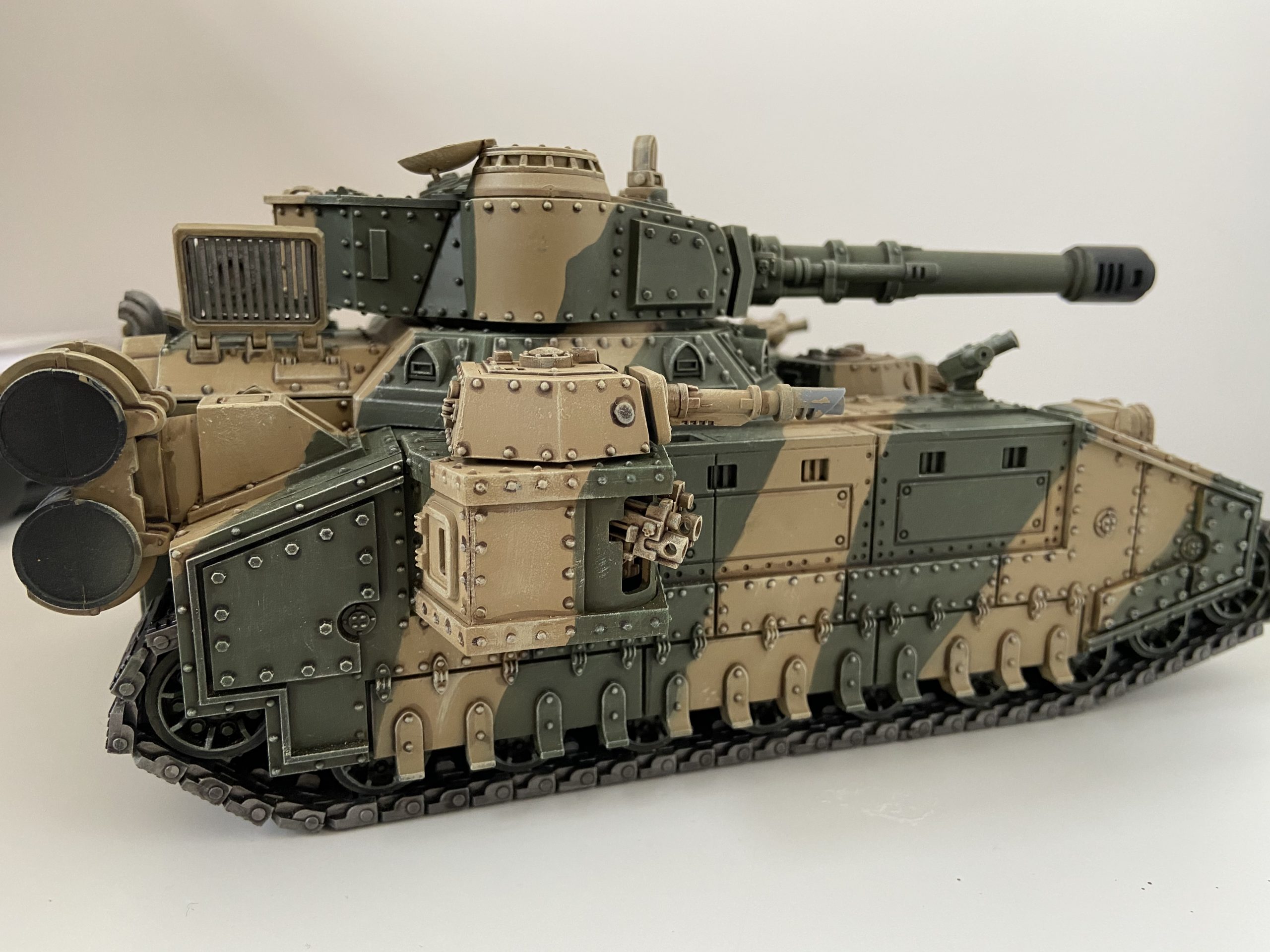 This is the Baneblade, completed. Later on in this article, there are WIP images, along with all the various methods employed to get The Nameless Storm done!
