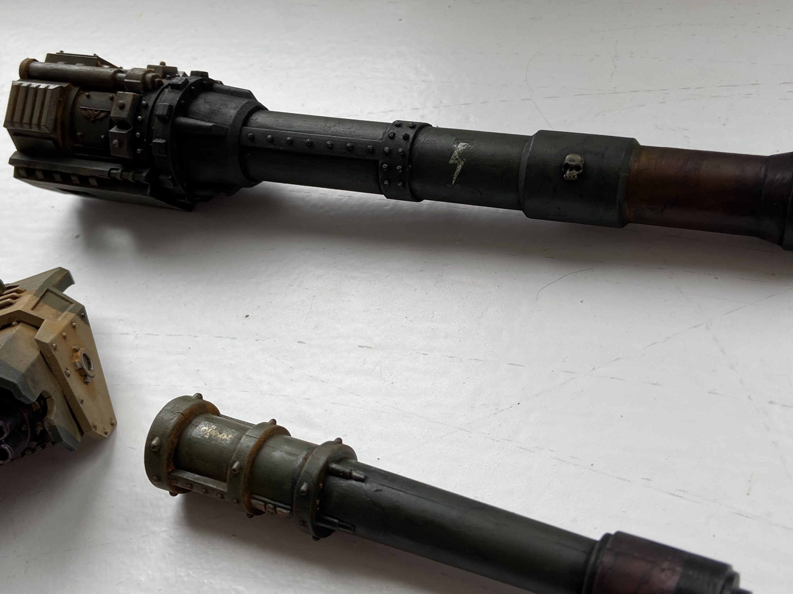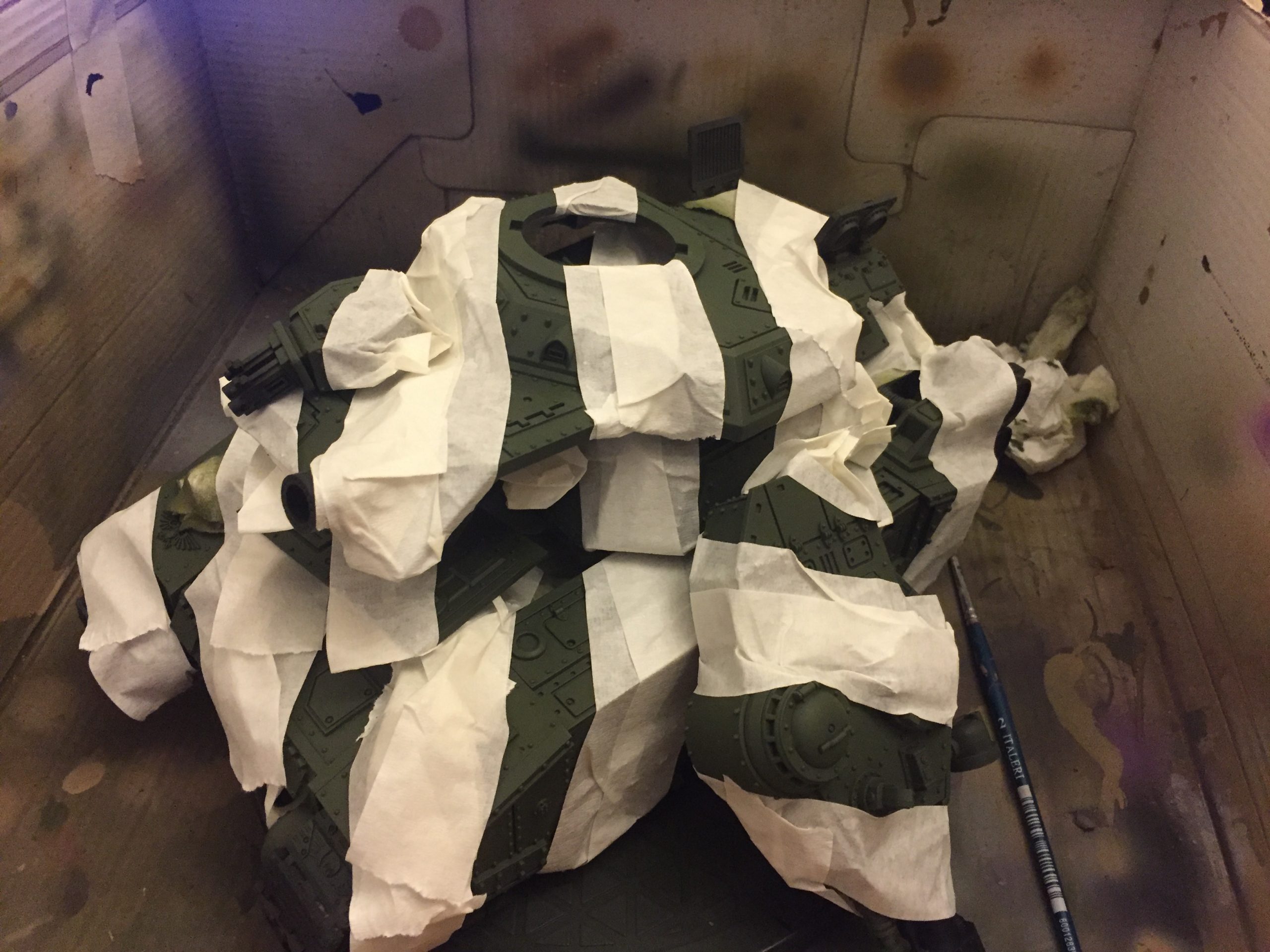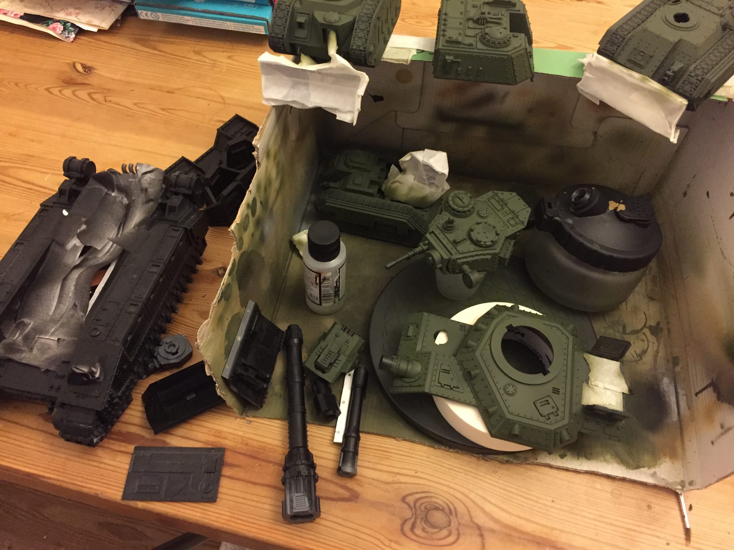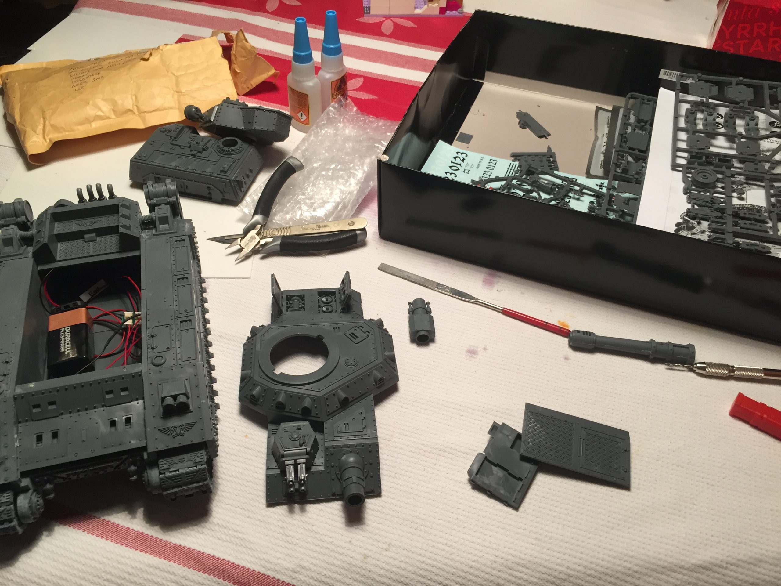 The following photos are (just about) all the work in progress photos I took of the Baneblade. The build photos and the photos up to the dry brushing stage were taken three years ago. The last stages from the dry brushing to completion were taken between Jan 31st and Feb 28th. So that is about 4 weeks to go from it being built and camo painted to being fully done.