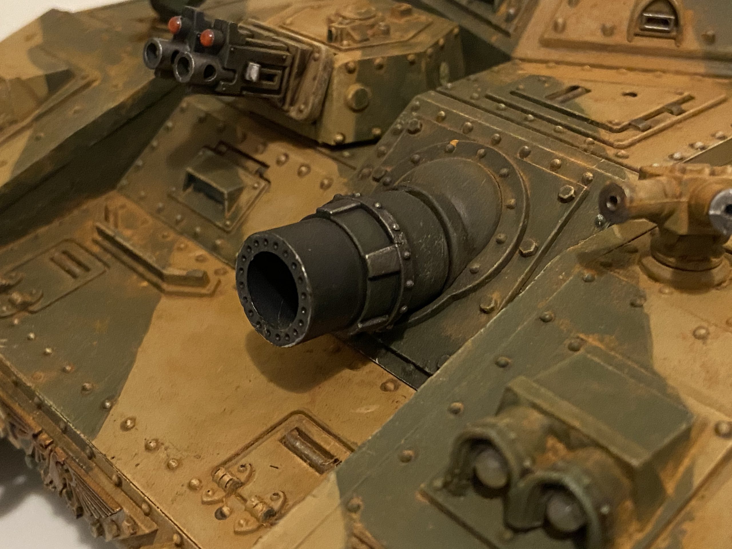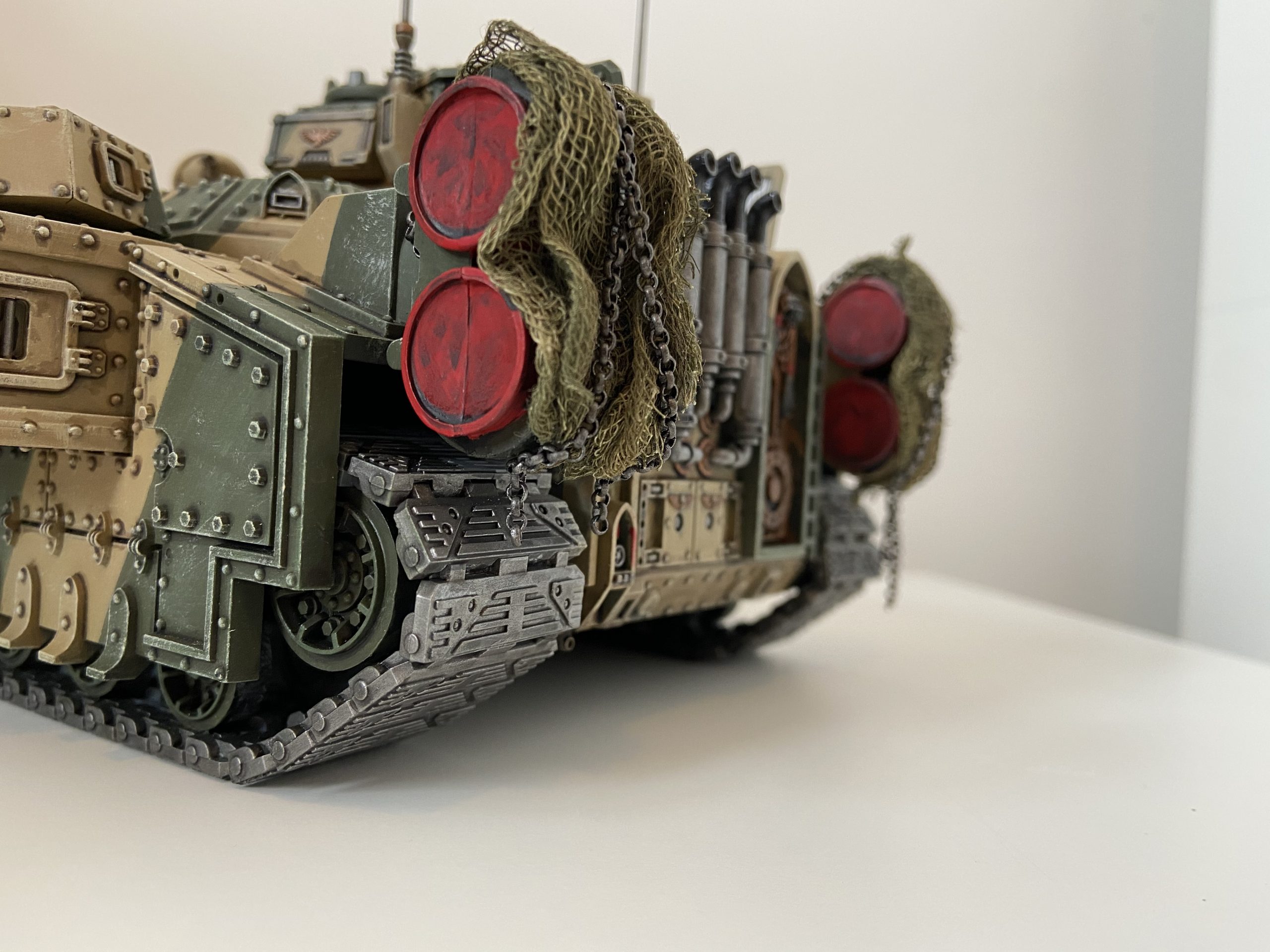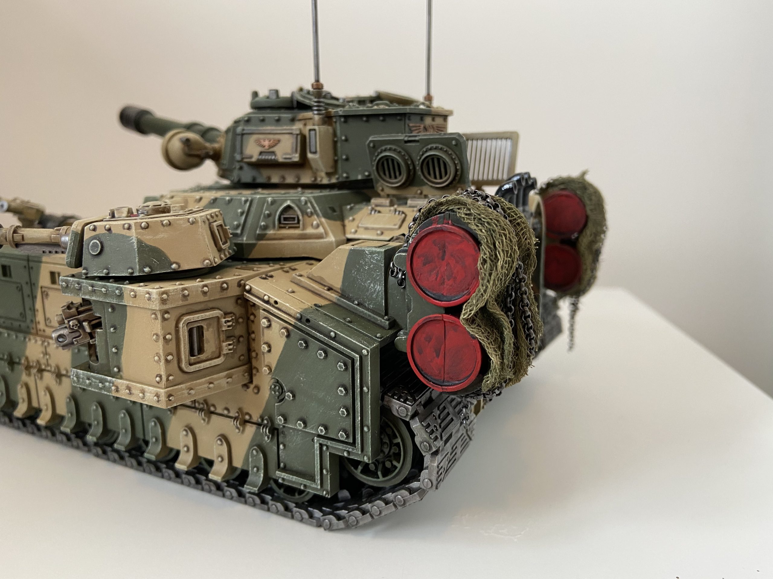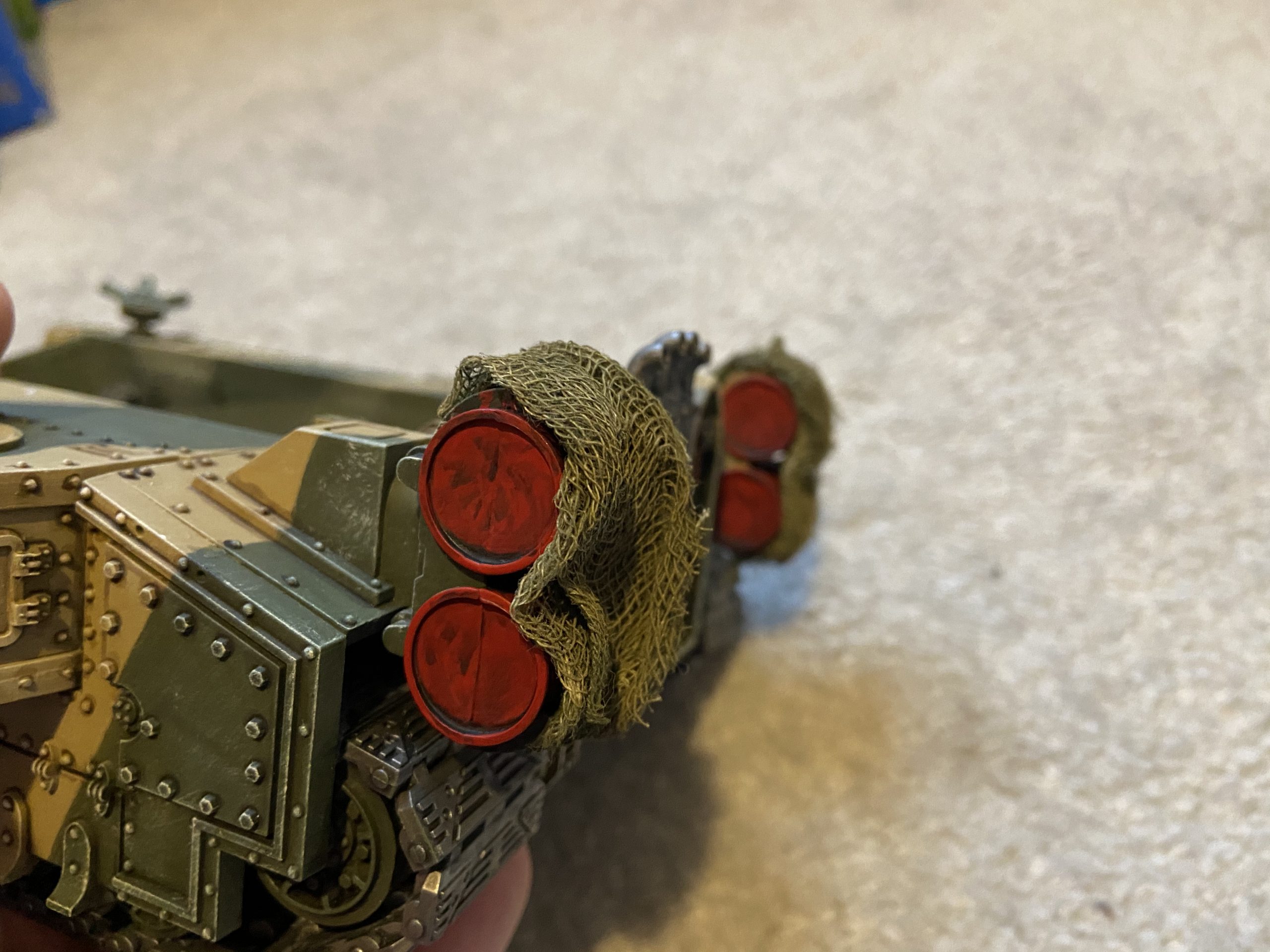 I did not like the barrels on the back of the Baneblade, so I covered them slightly with camo netting;