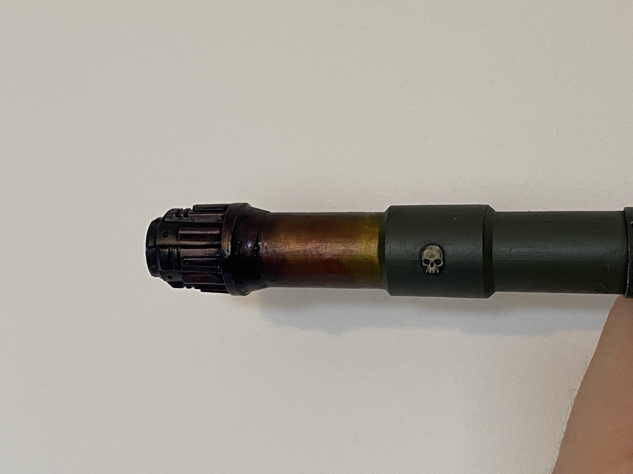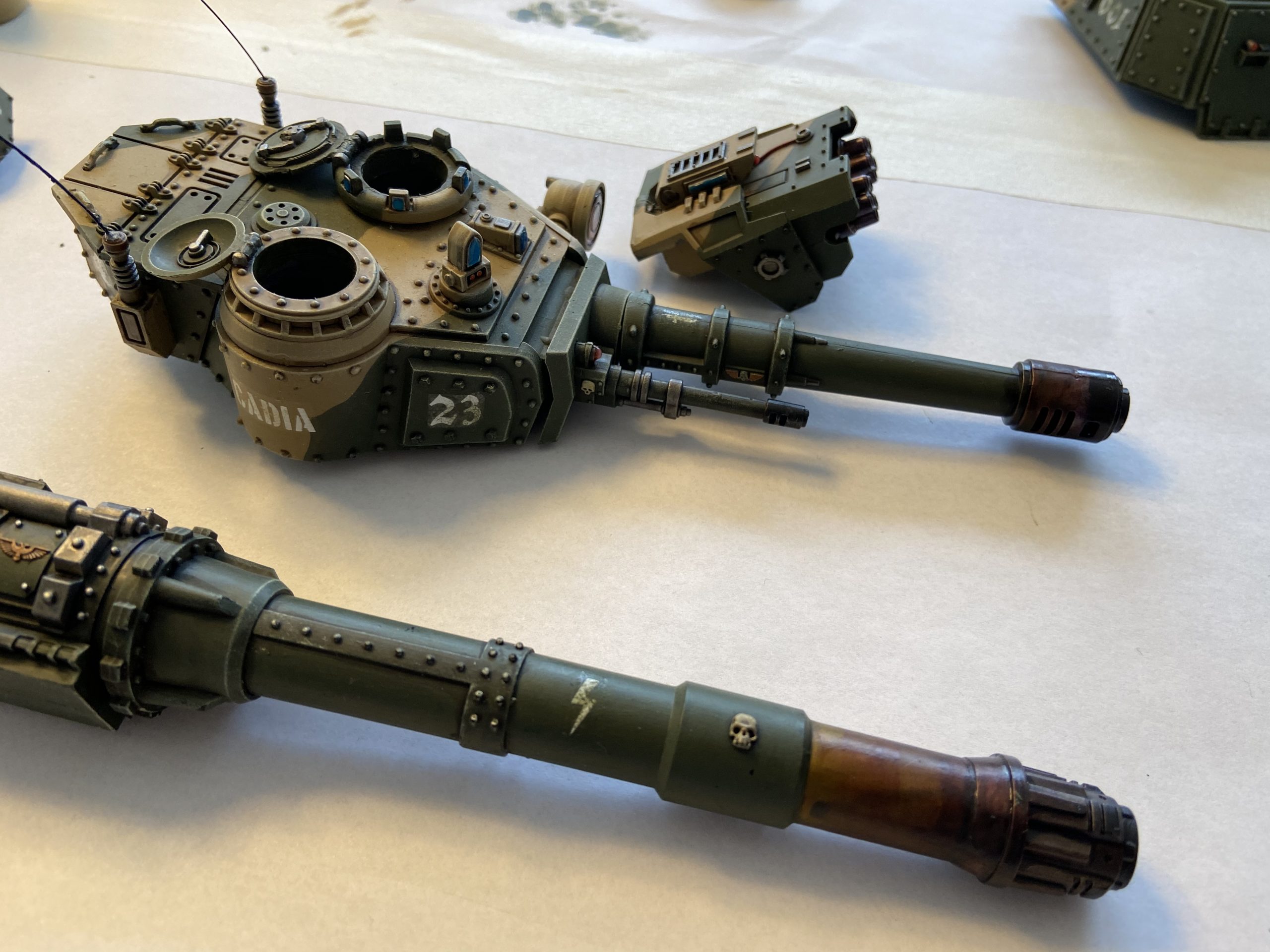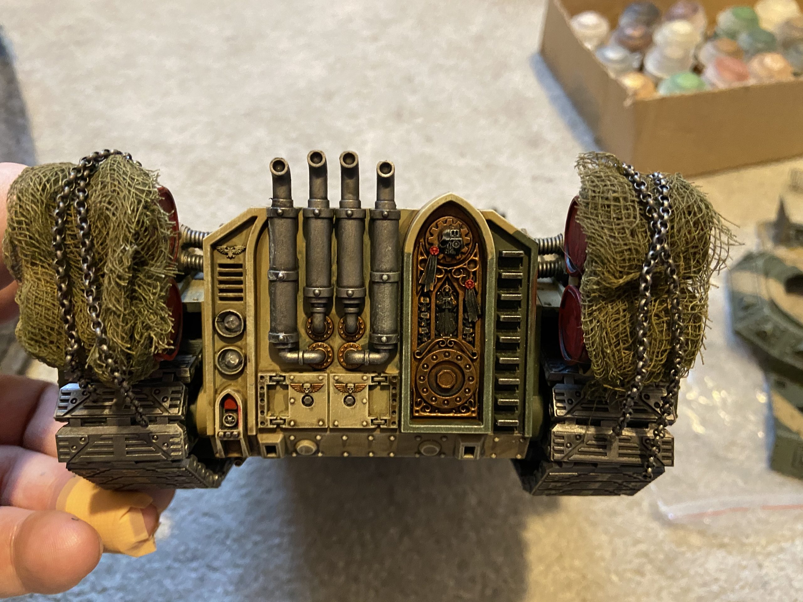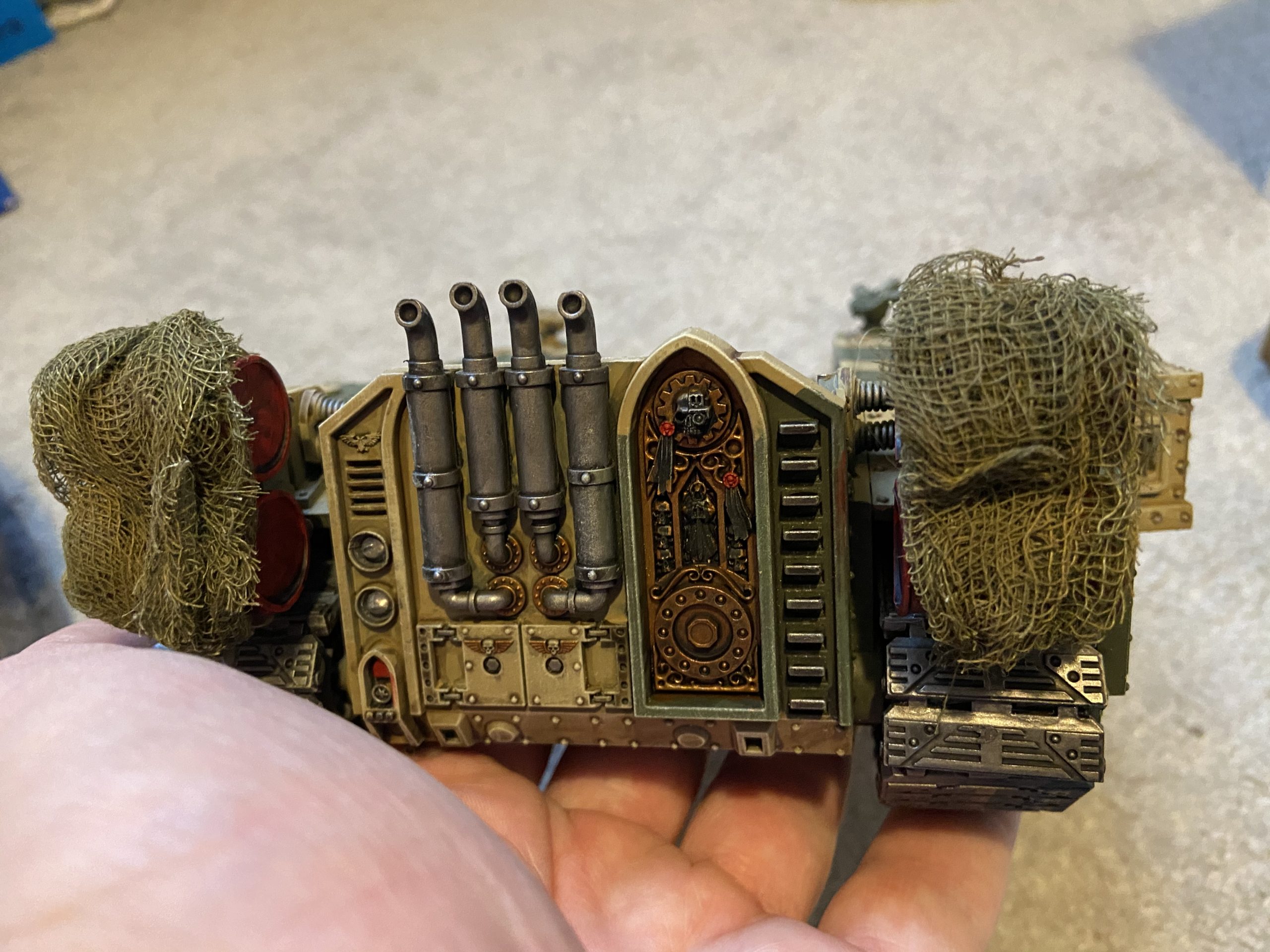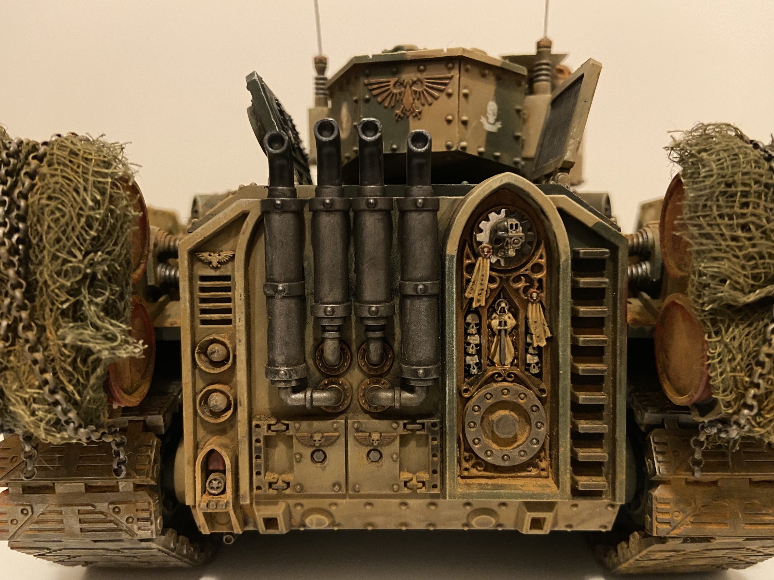 I did not like the barrels on the back of the Baneblade, so I covered them slightly with camo netting;