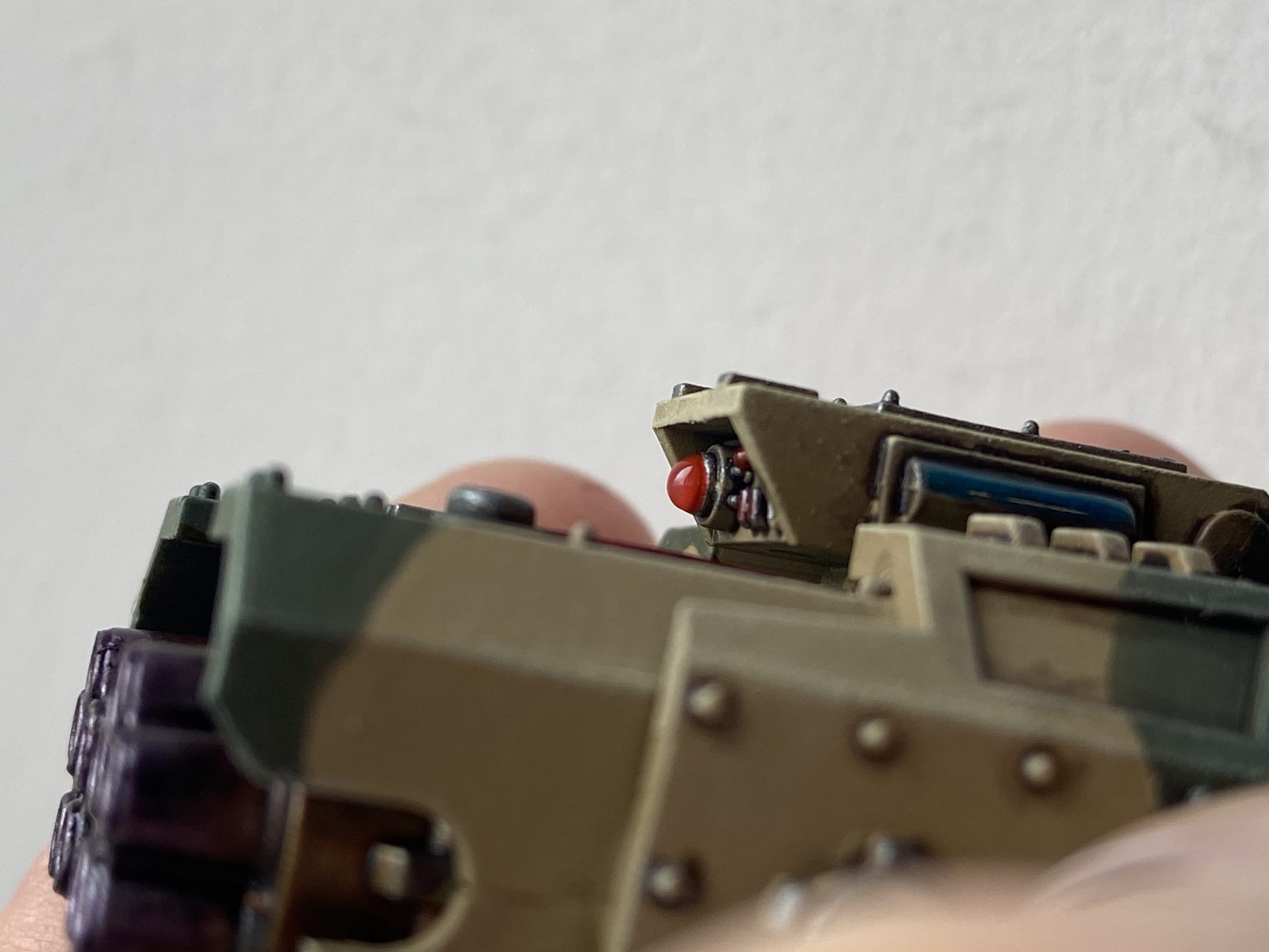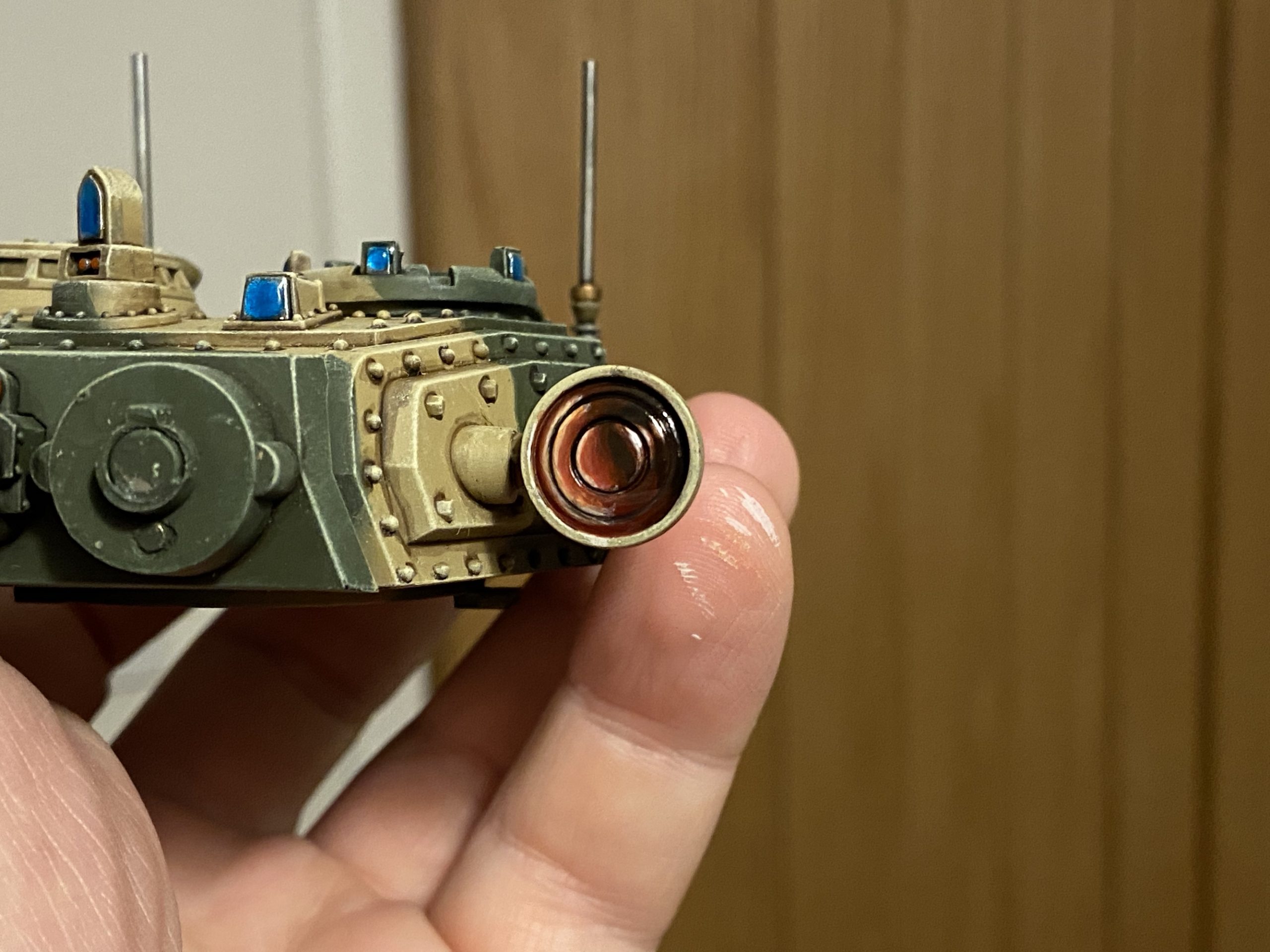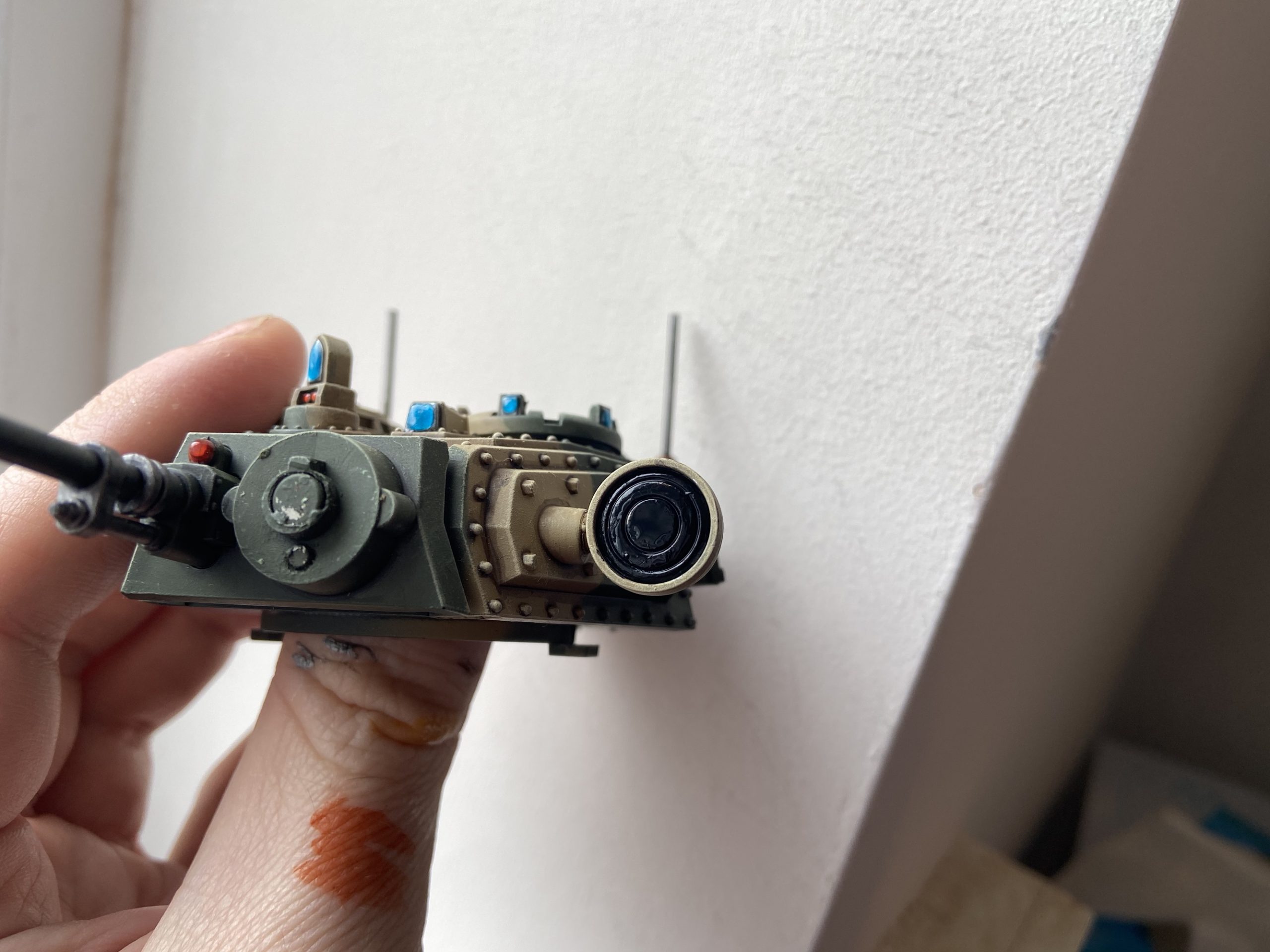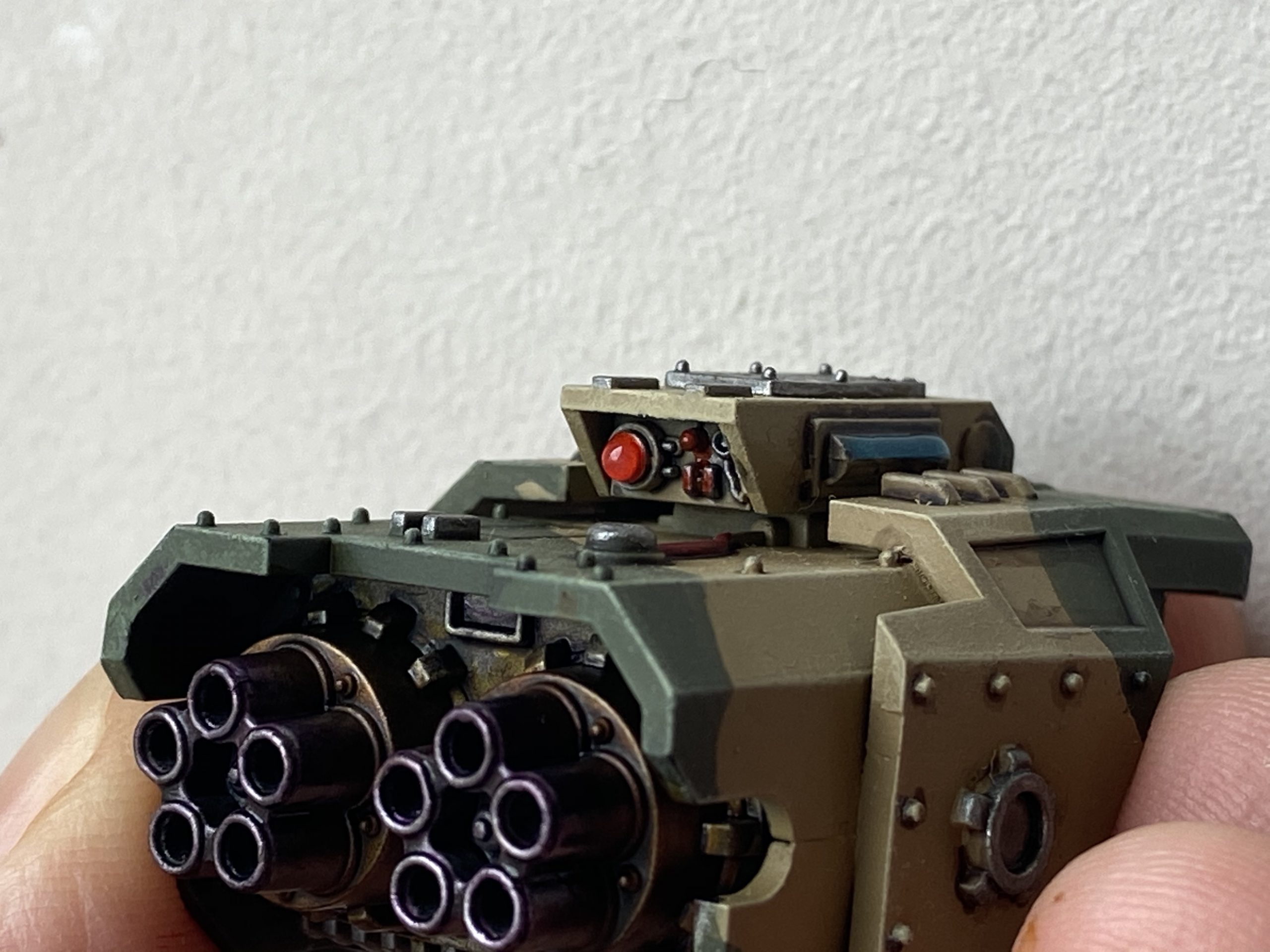 I use Games Workshop Gemstone paints for the small lenses on the Baneblade;