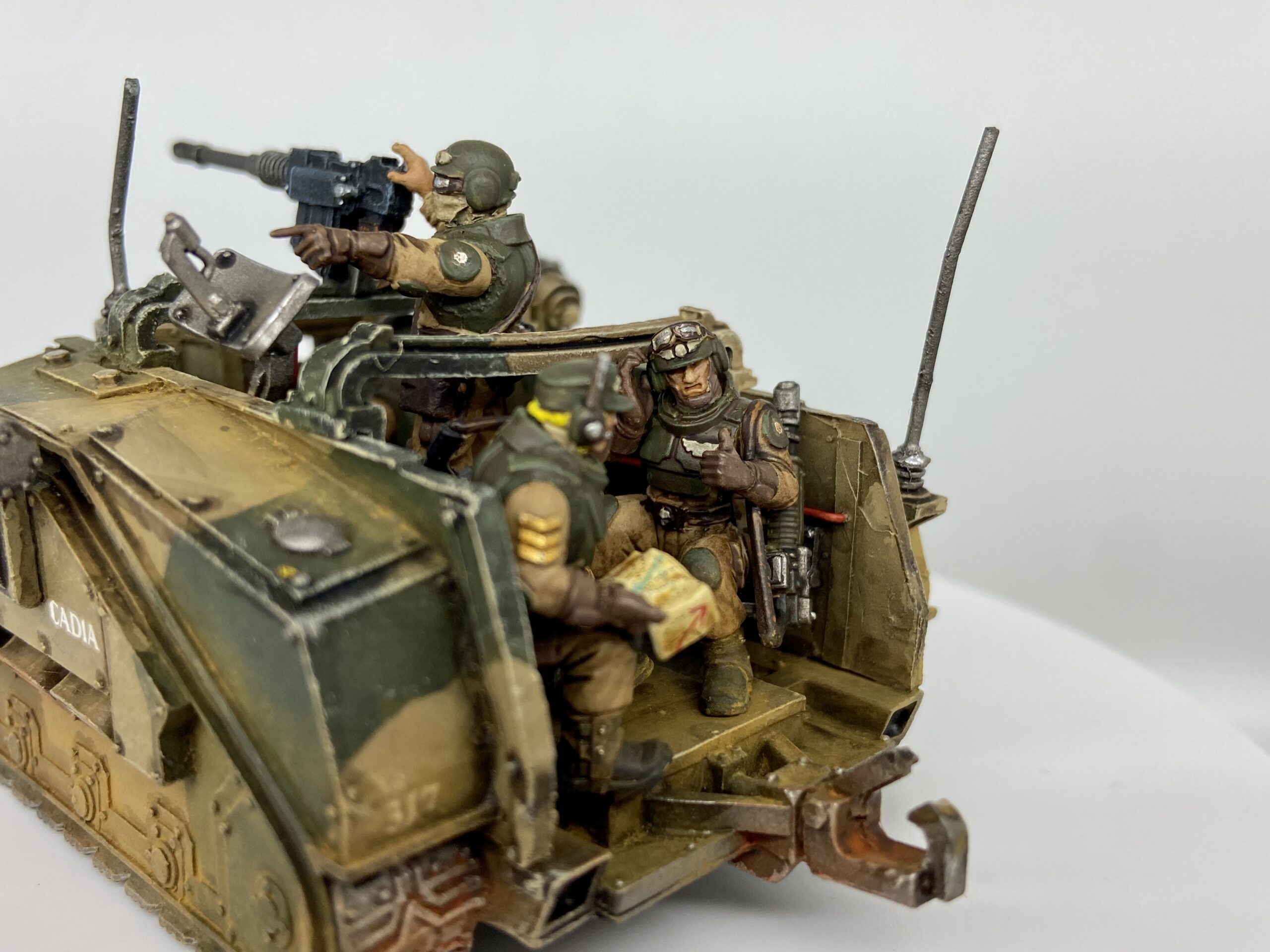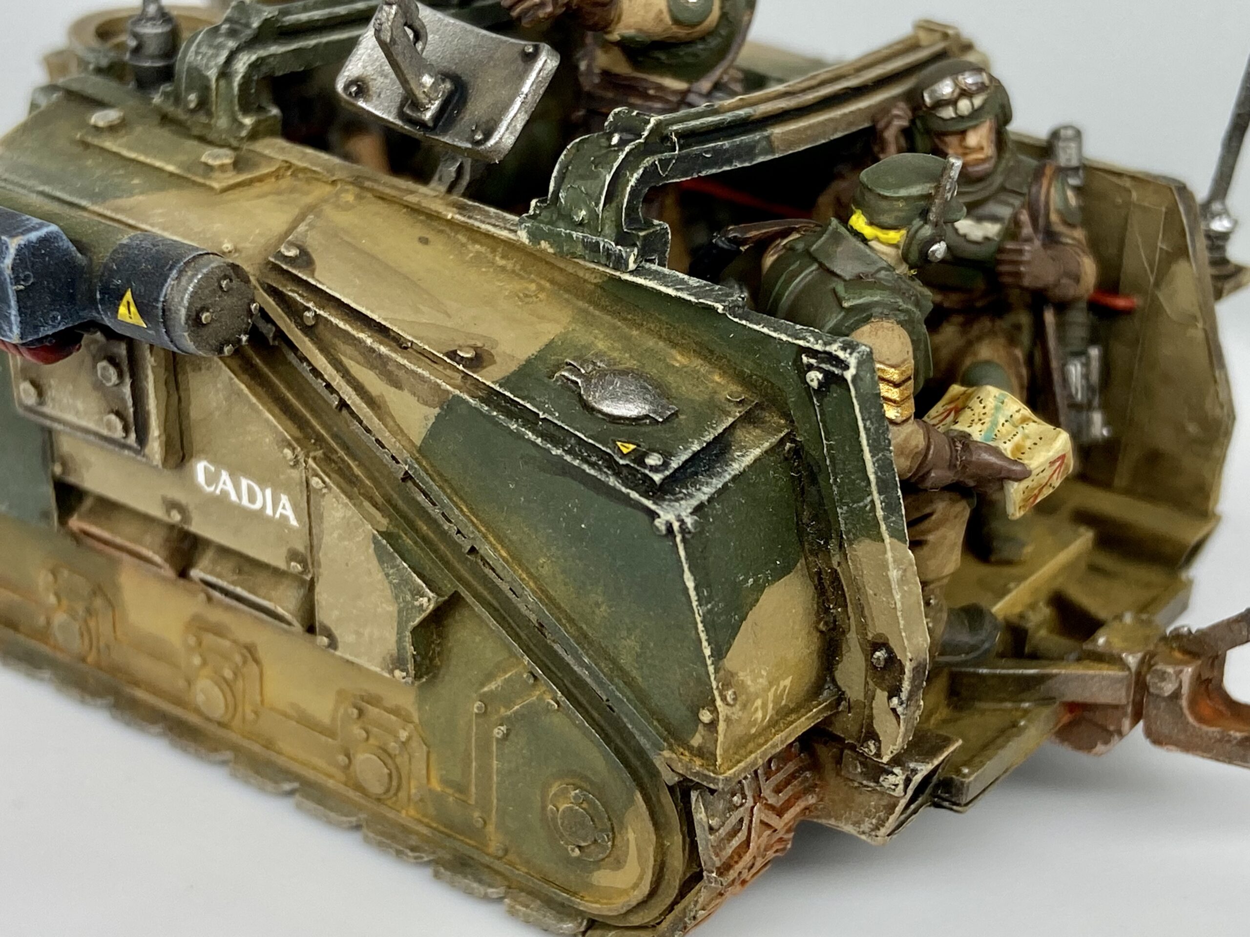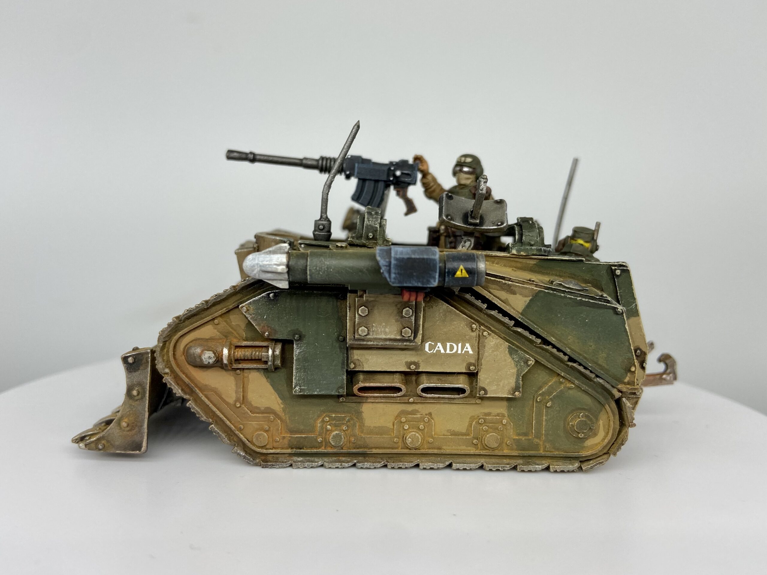These were taken with my Samtian Lightbox. The majority of this model follows my Cadian Camo scheme, with the crew using my new Cadian oil recipe.