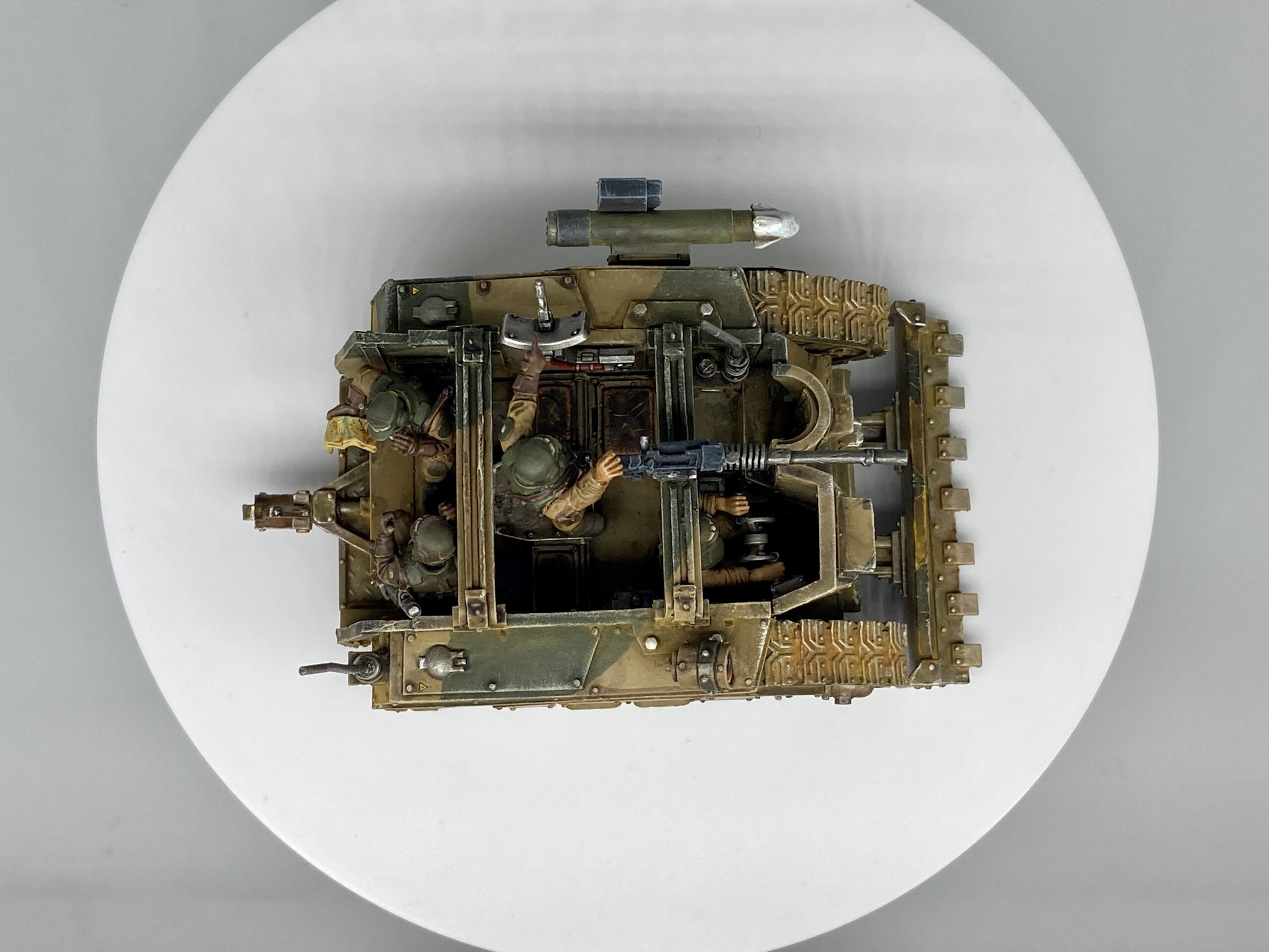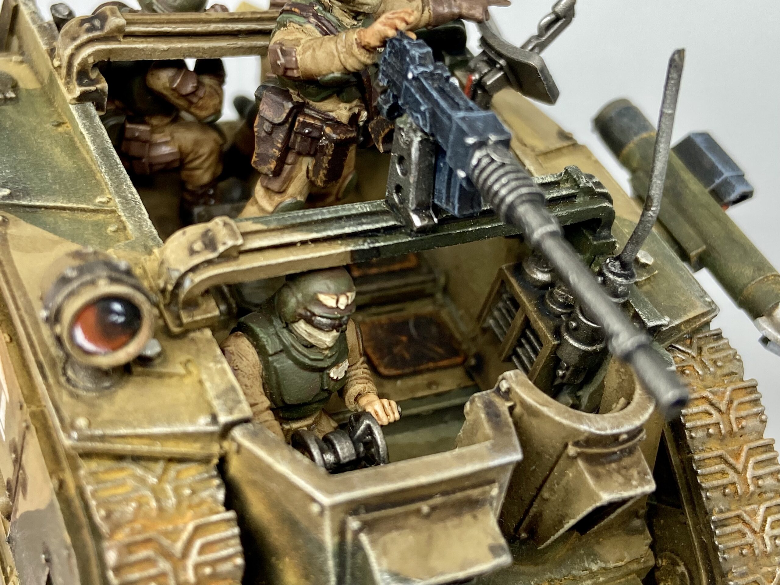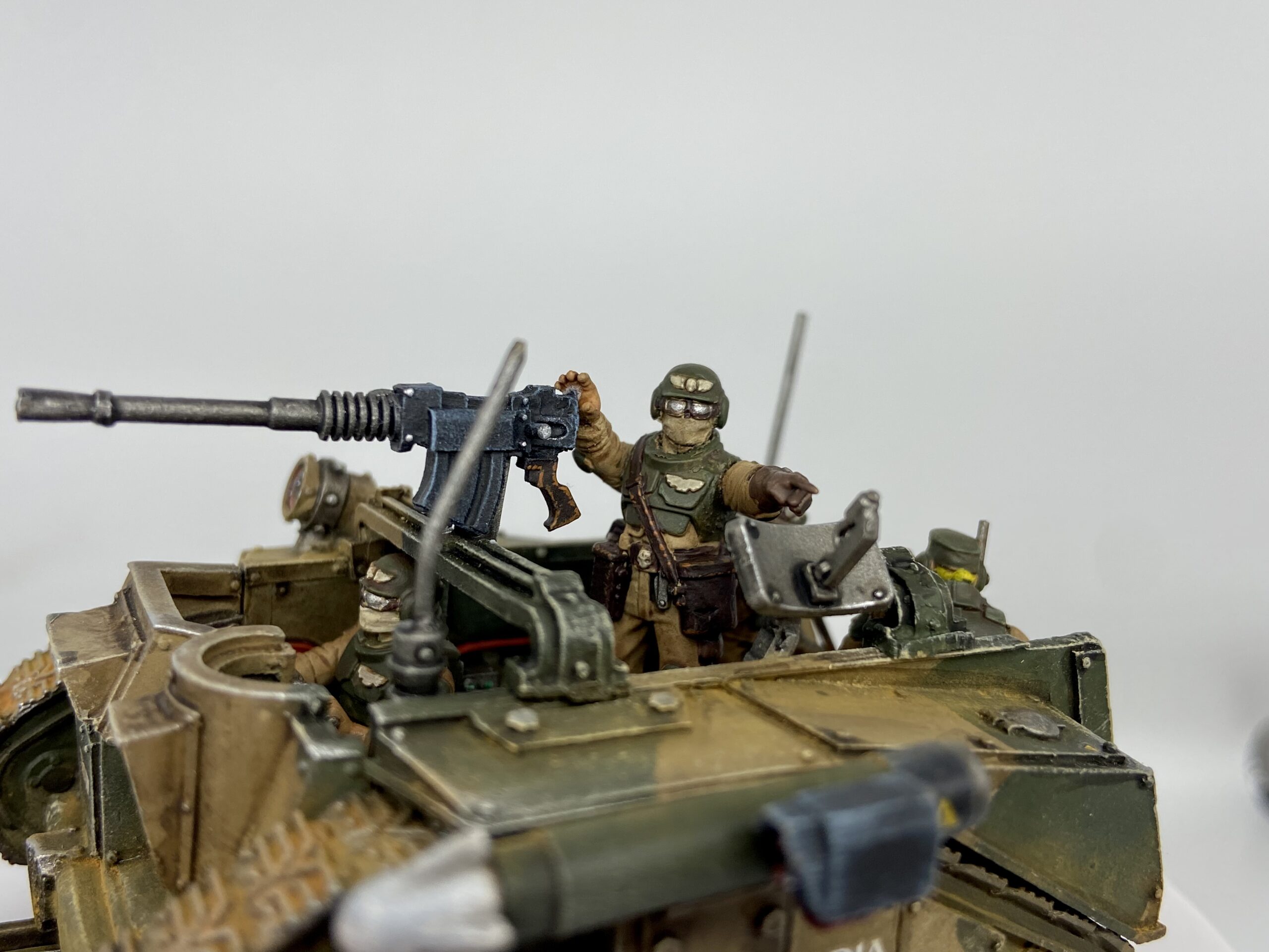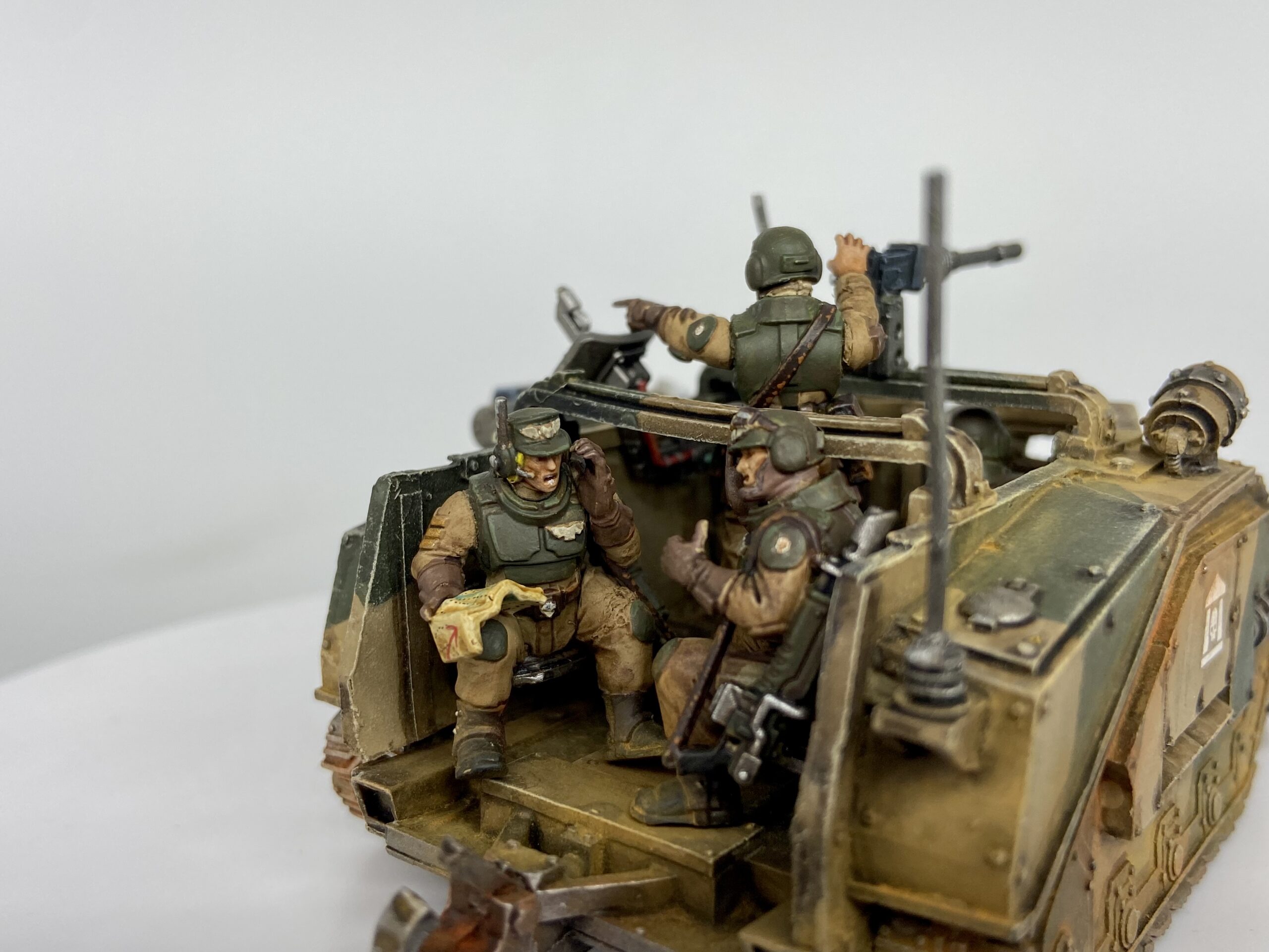 These were taken with my Samtian Lightbox. The majority of this model follows my Cadian Camo scheme, with the crew using my new Cadian oil recipe.