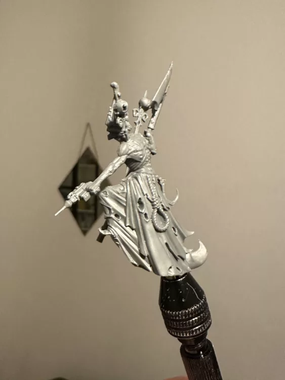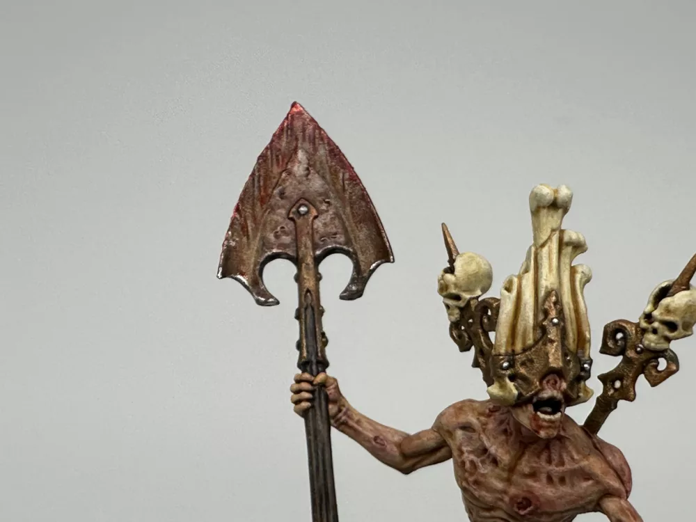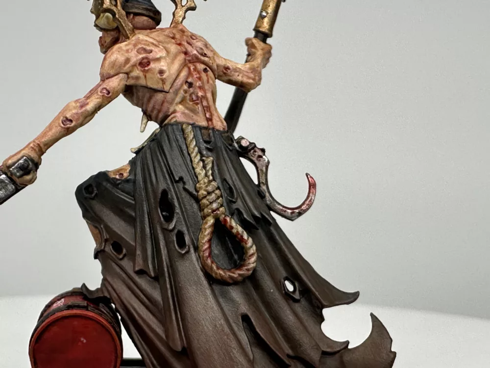 I need a Necromunda Rebel Lord to join my gang after making an Alliance with The Fallen House, enter Gorslav from Age of Sigmar. After a small conversion to add a Needle Pistol and remove the body/plank from the ground he was ready for a Necromunda paint job.